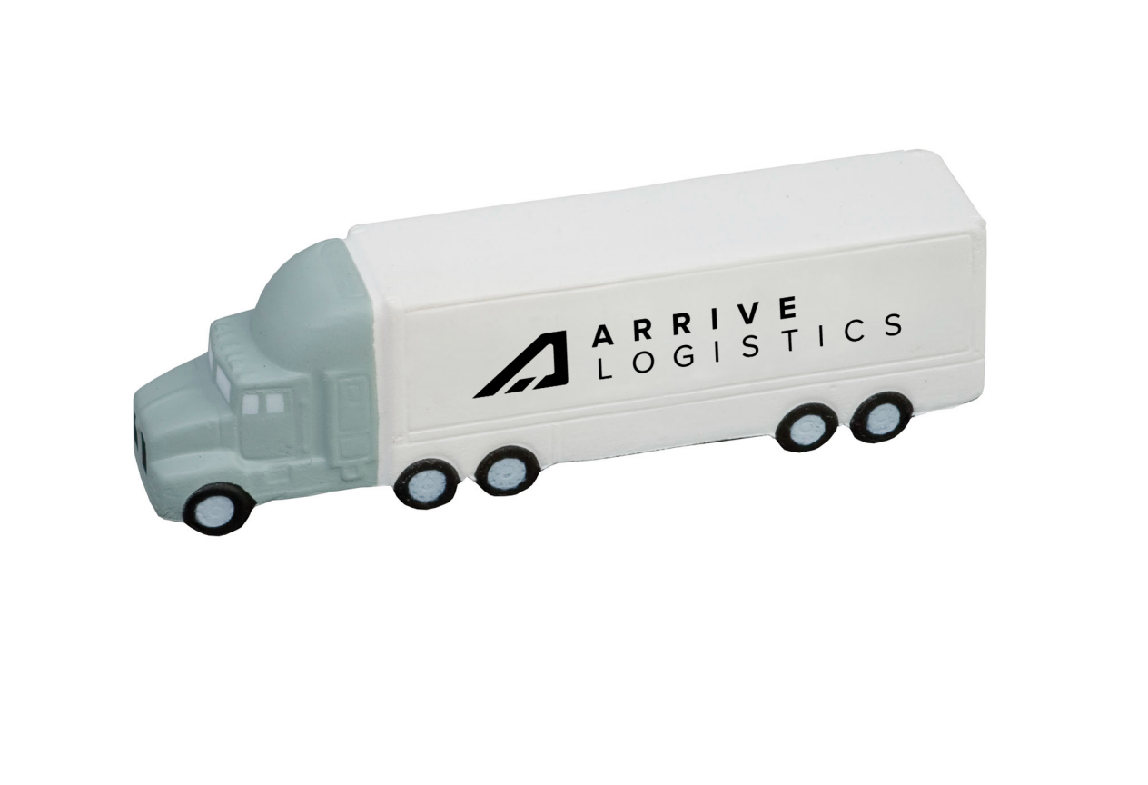 It's made of squeezable polyurethane foam material and comes in the shape of a semi truck.